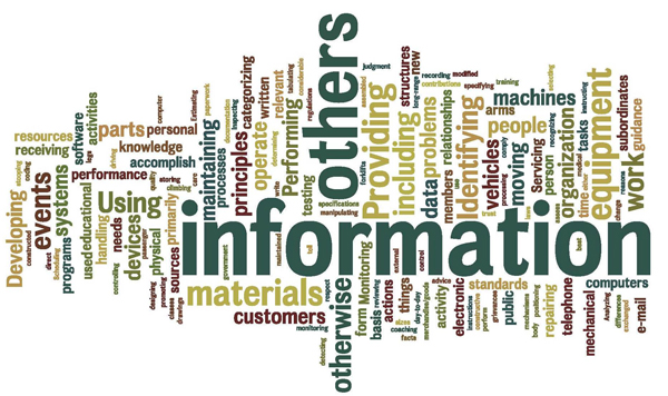 In December 1998 O*NET, or the Occupational Information Network, database replaced the former print reference source, Dictionary of Occupational Titles. For over sixty years, the Department of Labor (DOL) has sent out surveys to employers and employees to gather descriptions of the tasks done in a wide variety of jobs. These descriptions were initially compiled in the Dictionary of Occupational Titles and later formed the foundation for the O*NET database. In addition to the survey information, trained job analysts at DOL classify jobs into categories and augment the gathered information with authoritative headings. The classification system that was built from these descriptions was expanded in the late 1990s and moved from simple task lists to add worker domains and occupation characteristics, such as work styles, activities, and contexts.4 The resulting data model is complex but enables users to align worker-related expectations (e.g., skills and abilities) with job demands (e.g., work activities).