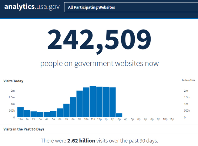 Figure 1. Dashboard style display: “People on Government Websites Now,” https://analytics.usa.gov/.