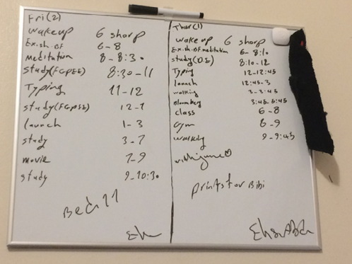 Yu Yan: [Pointing to a photo] This is my boyfriend’s home. And this is his schedule. So for the day he’ll start the day at six sharp. And this gives me an idea of his schedule. So everything needs to be done and then we can cuddle, or we can watch something.