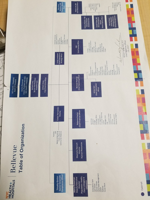 As with some examples related to directional information seeking under the theme “information in the moment,” taking photos was a method used to parse complex information. While speaking with her supervisor at work, Syeda noticed an organizational chart in the office that would be useful for an upcoming assignment. A quick snapshot of the chart, image 10, gave her the information she needed to incorporate it into her assignment later in the semester.